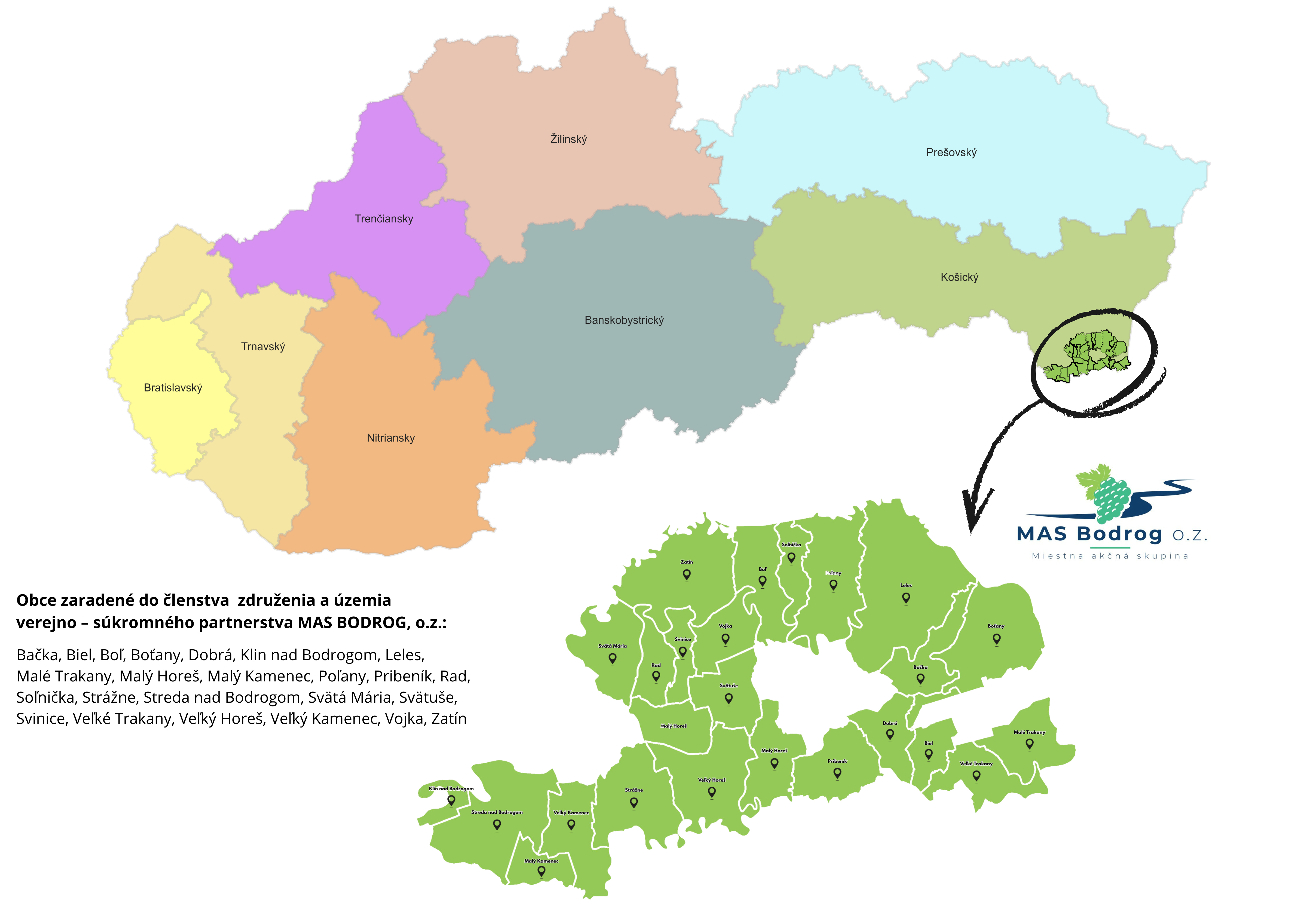 Územie MAS BODROG, o. z. sa rozprestiera v južnej časti Východoslovenskej nížiny na úpätí Zemplínskych vrchov, je súčasťou Košického samosprávneho kraja a nachádza sa na južnej časti trebišovského okresu.